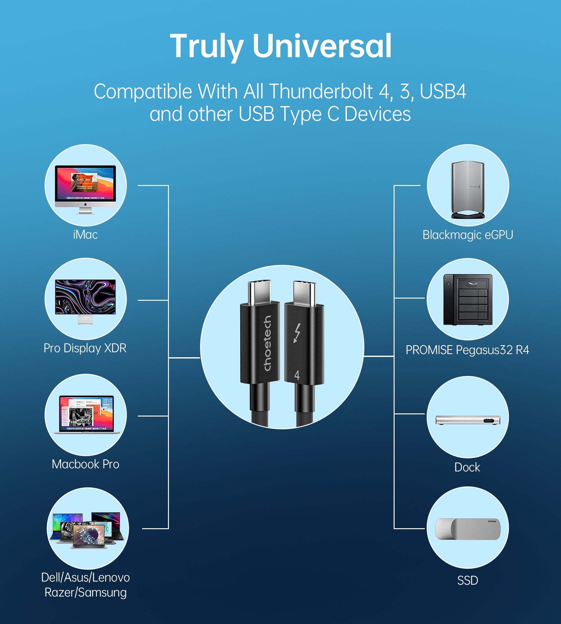 Thunderbolt 4 Cable – 40Gbps Data & 100W PD, 2.6ft Length