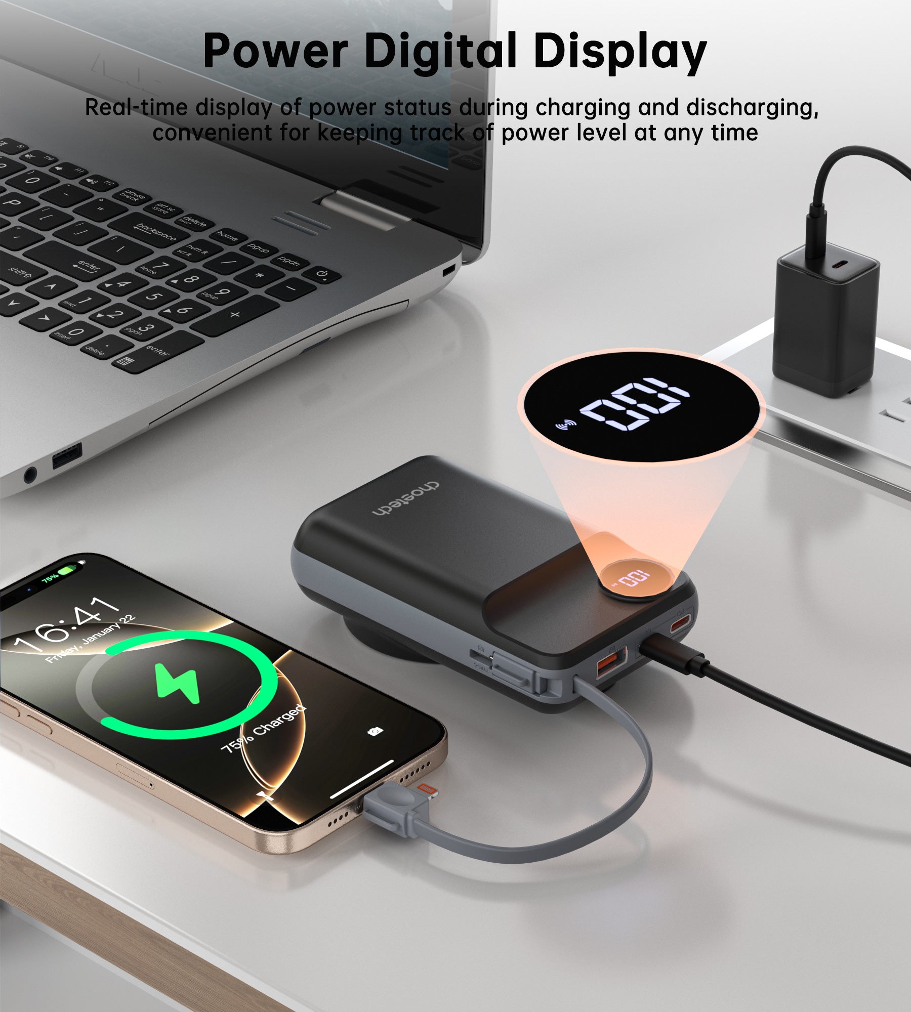 ⚡ 22.5W PD Fast Charging: Deliver rapid power through USB-C or USB-A ports — supports multiple fast charging protocols.
