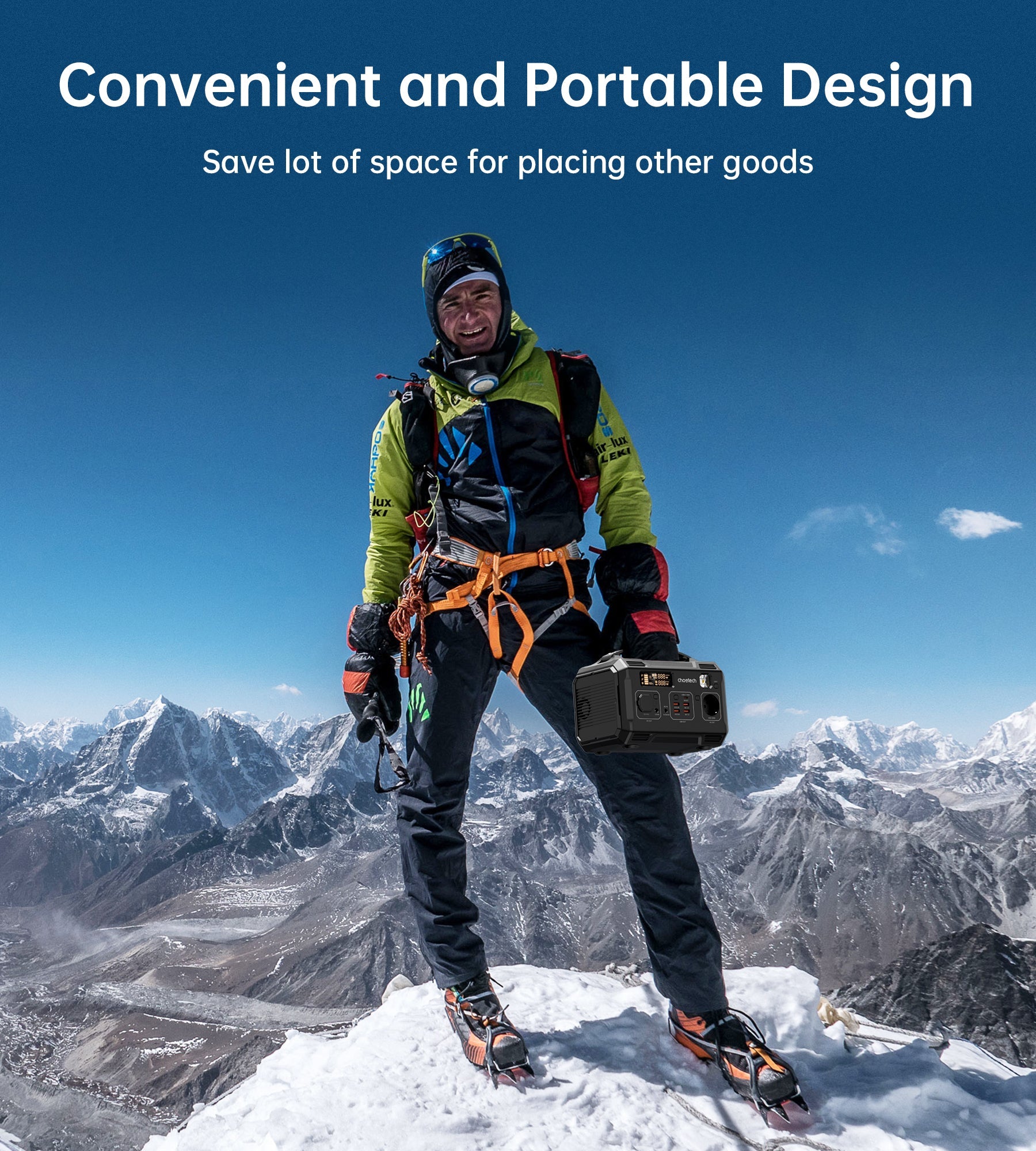 Full side body aviation aluminum alloy shell and ABS material strengthens the edges, convenient handle and its anti-slip mat at the bottom prevents the unit from damage. The power station has built-in protection against overcurrent, overvoltage, and overheating, ensuring the safety of your devices.