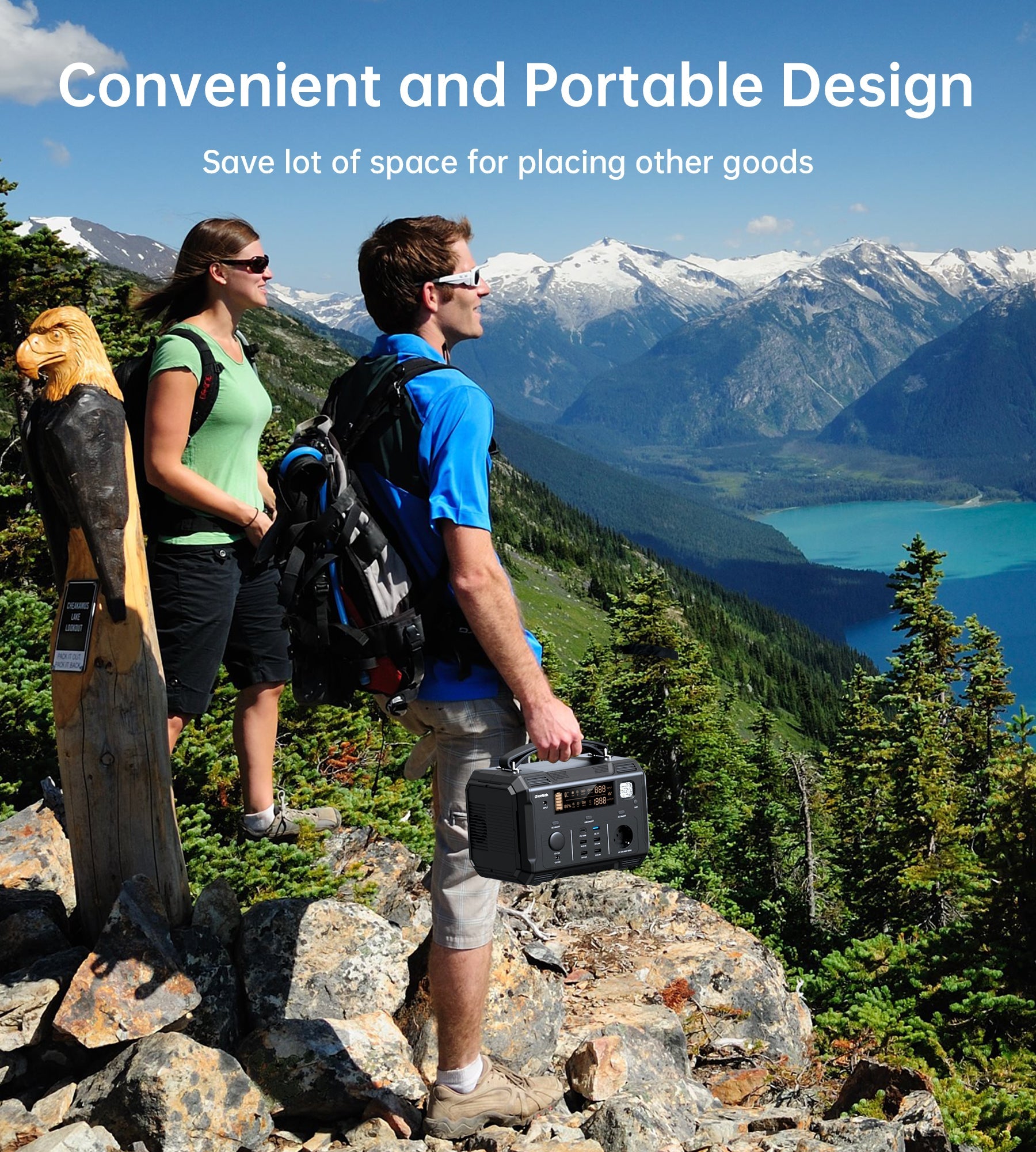 Equipped with a comfortable handle and designed to be the ideal size for traveling: it will fit perfectly in your backpack or the backseat on long road trips: crank up the music, power up a drone, keep the lights on, charge a phone, and power up other useful appliances.
