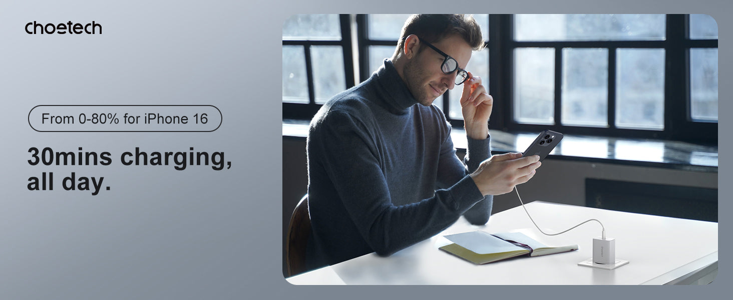 Experience faster, cooler, and more efficient charging with our wall charger - the perfect blend of power and portability.