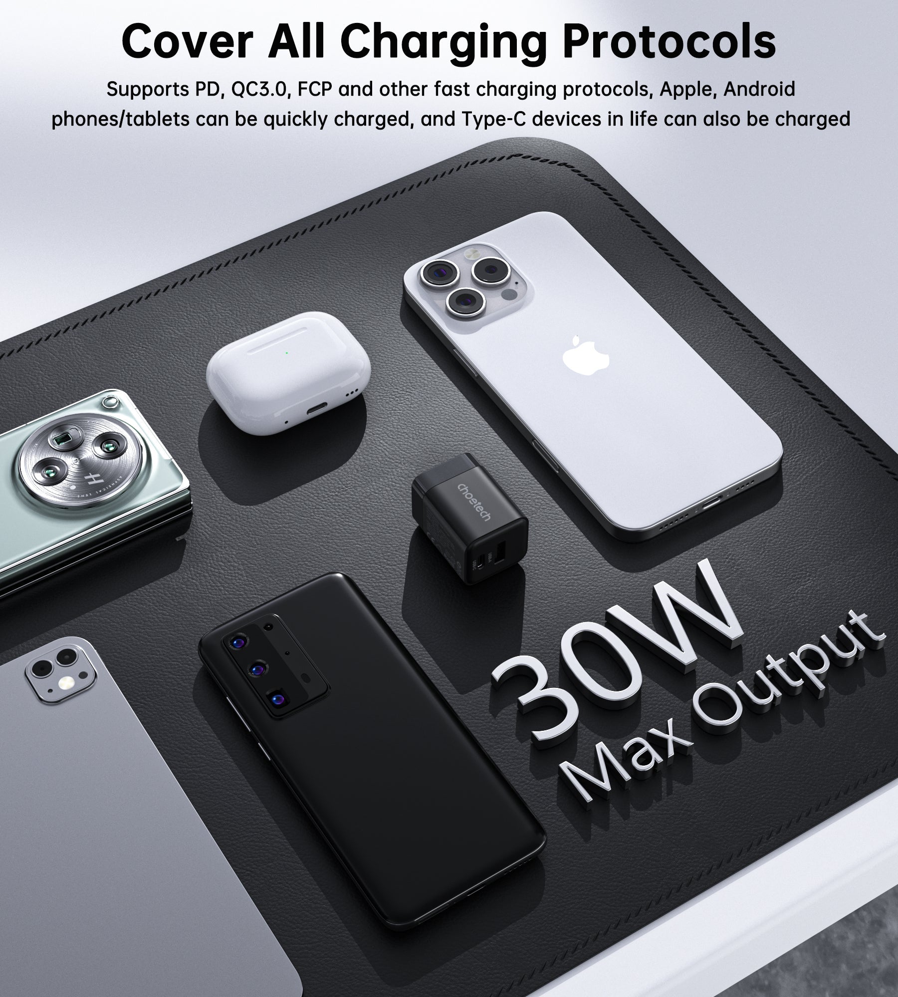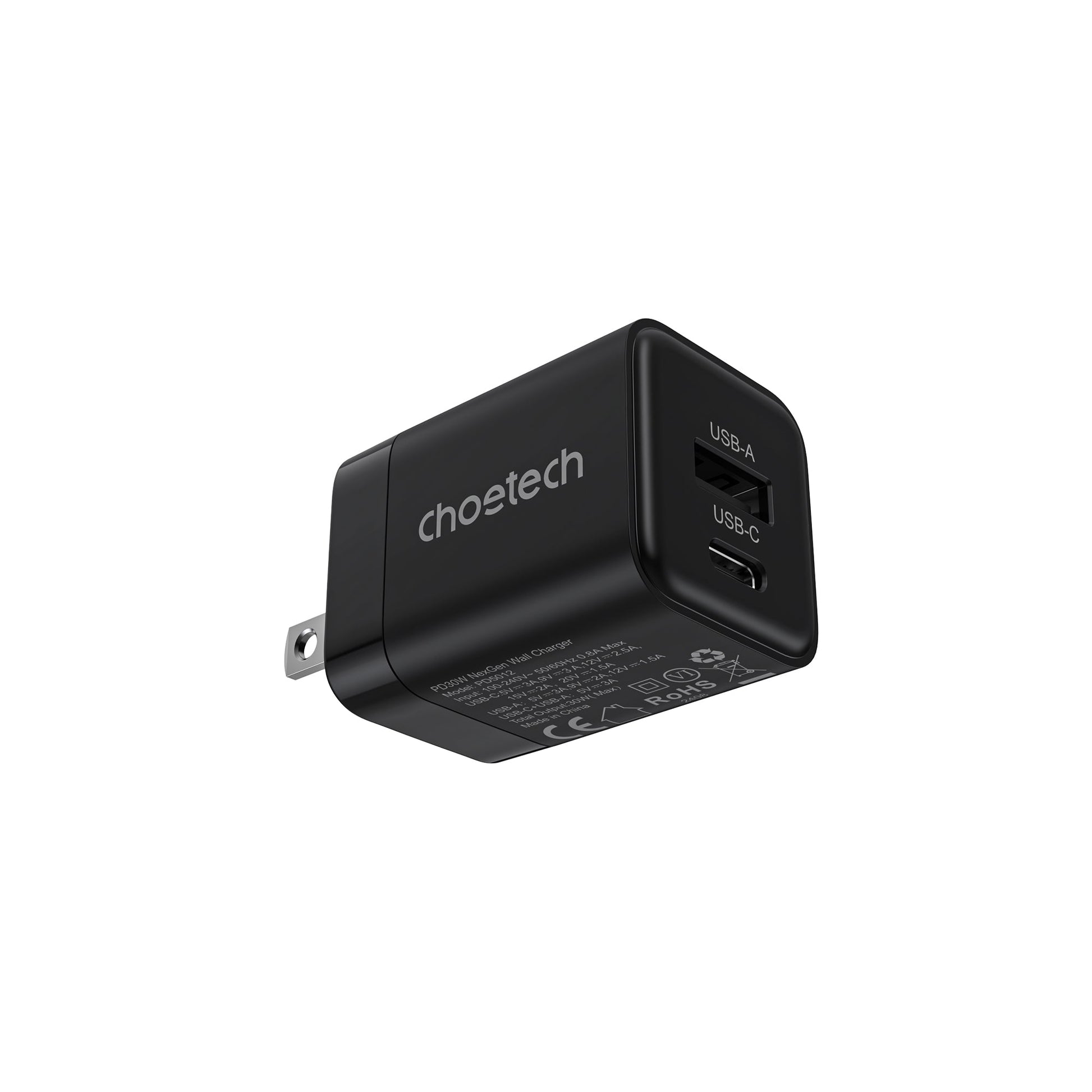 30W GaN Charger – Dual USB-C & A, for iPhone 16/15, US