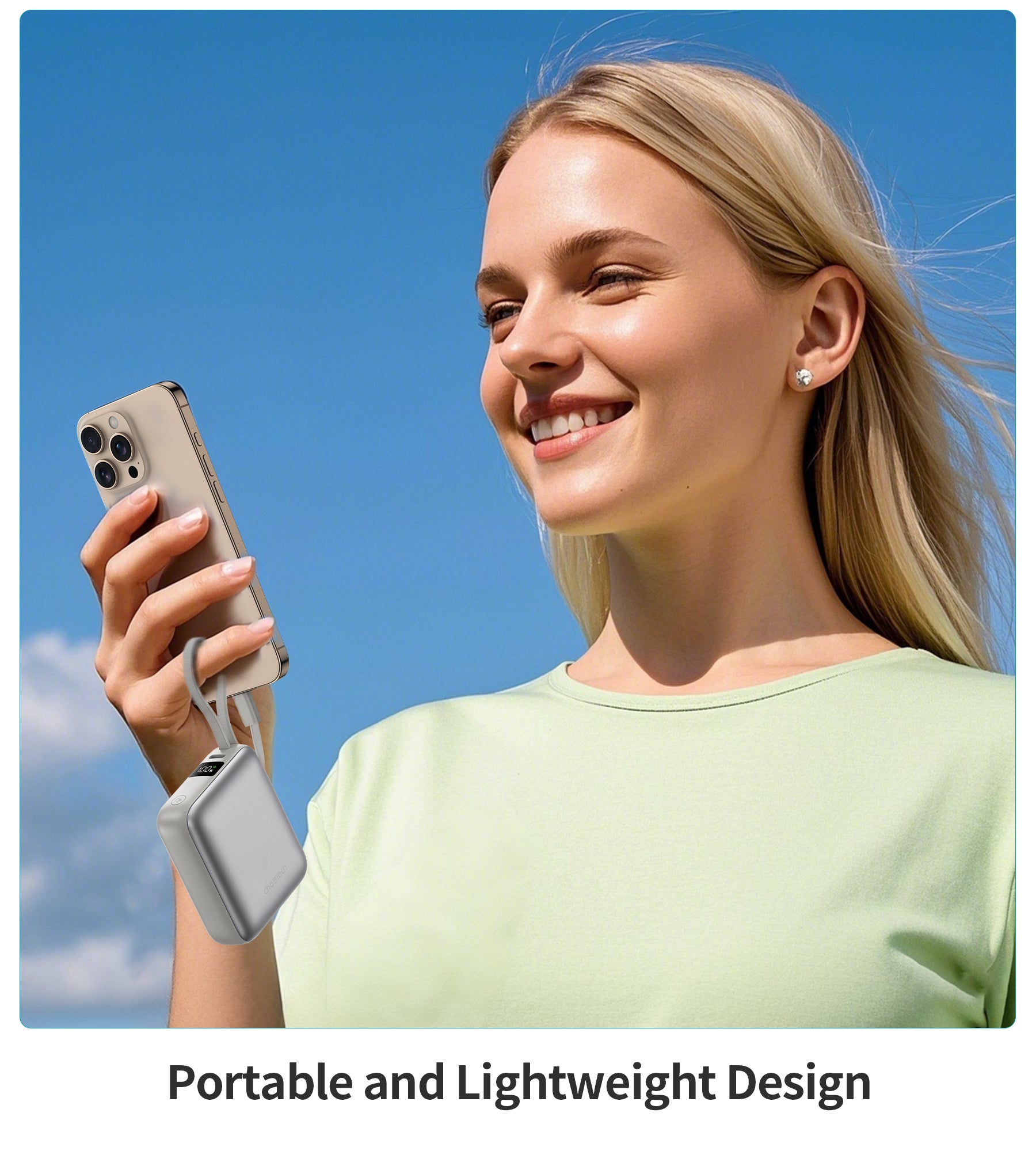 10000mAh Mini Power Bank – 35W with USB-C Cable, Silver