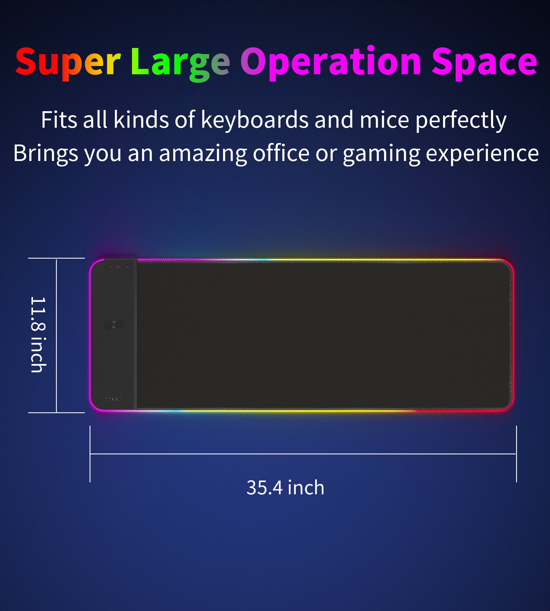 15W Wireless Charging Mouse Pad – RGB Lighting, Black