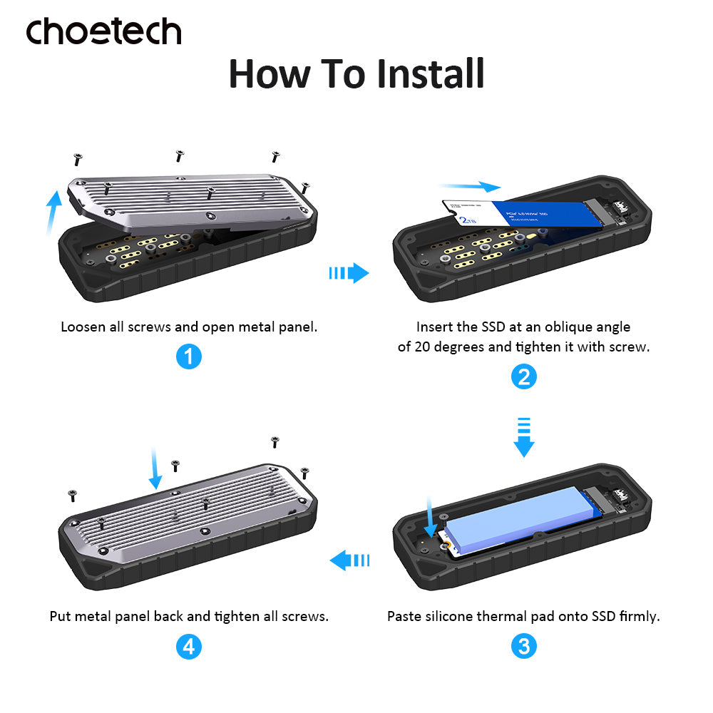 Transform any M.2 NVMe SSD into a sleek, high-speed external drive with the Choetech M.2 Enclosure – perfect for massive storage needs on the go.