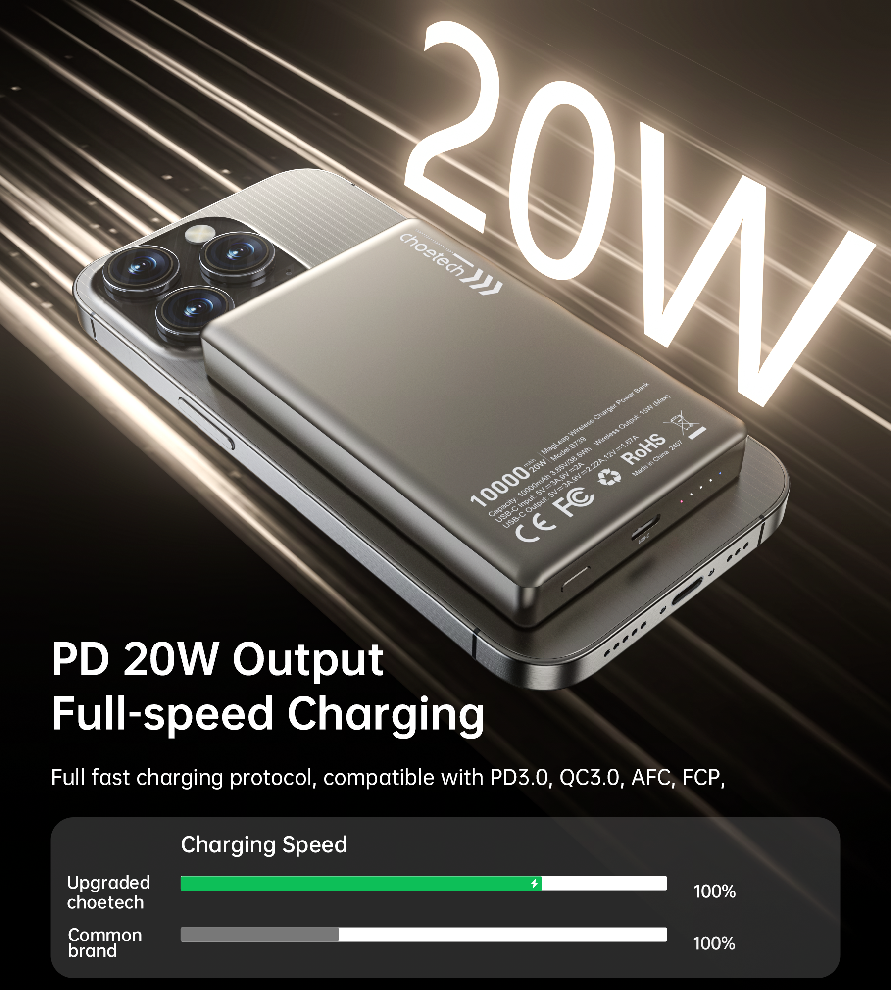 Input: 5V-3A/9V-2A/12V-1.5A (18W) *Wired maximum power: PD20W, * Wireless Output: 5V-1A/5V-1.5A/5V-2A/5V-3A (15W max)