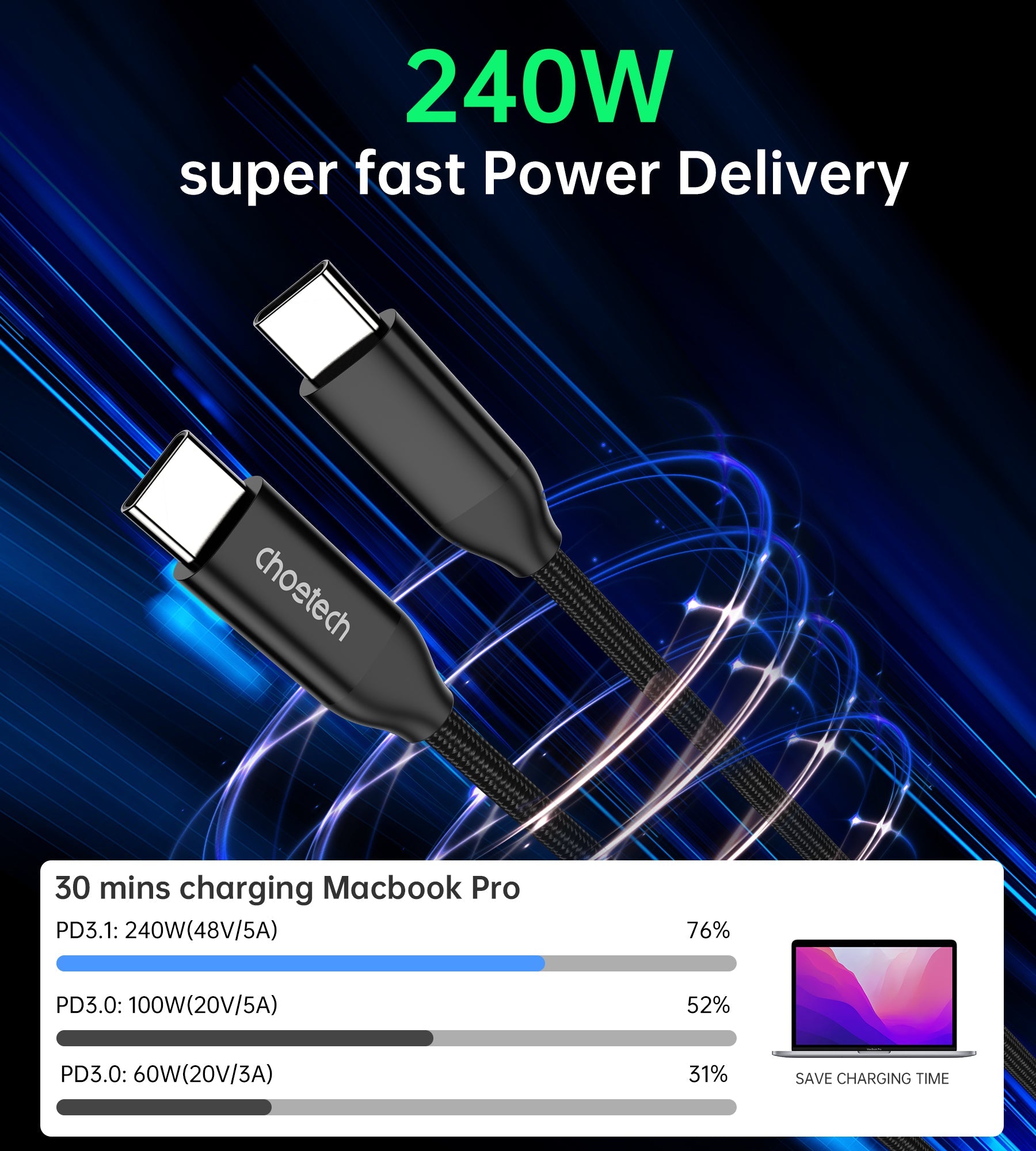 240W USB-C to USB-C PD3.1 Fast Charging Cable – 1.2m
