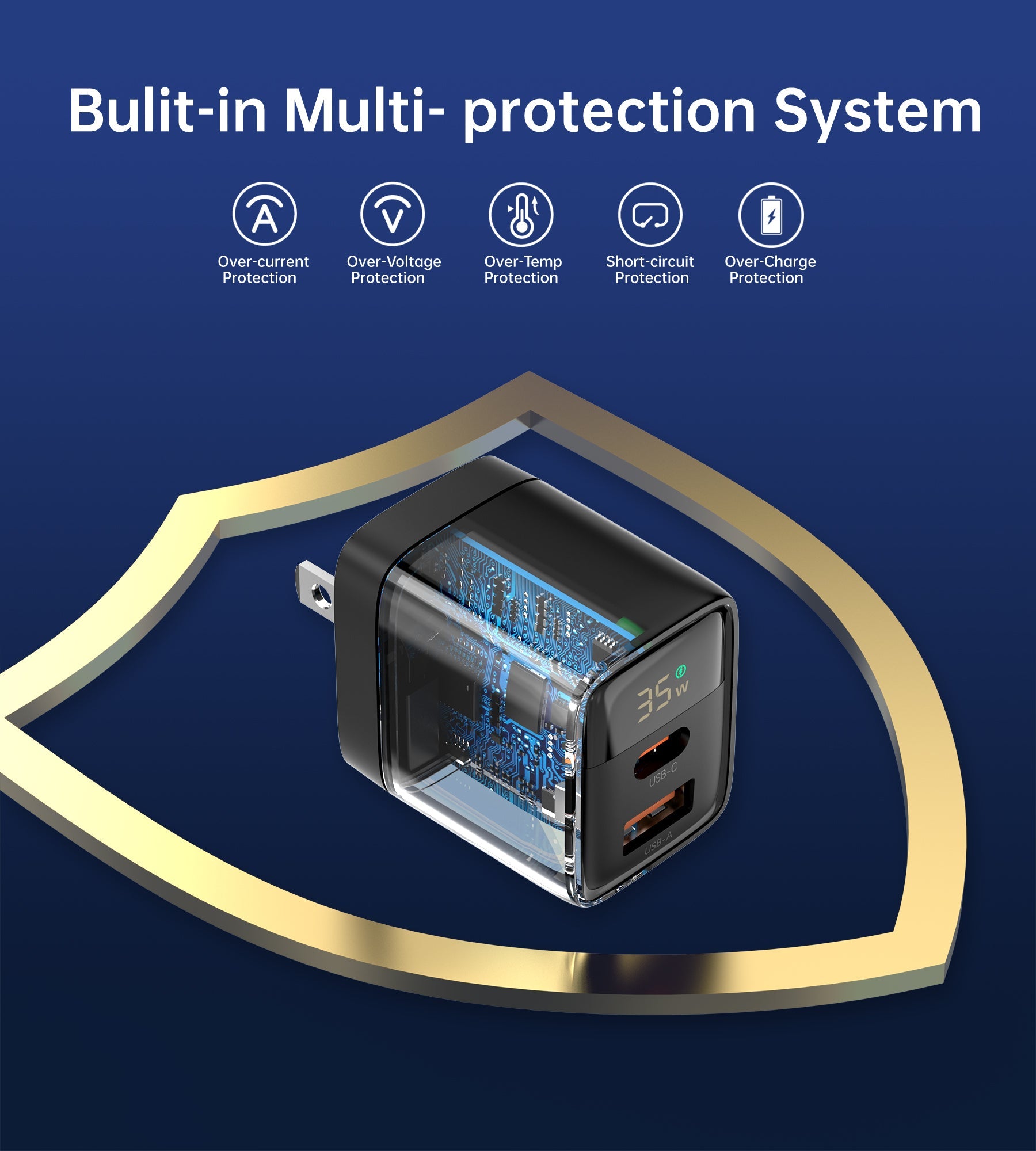 Personalizeitnow PD6052 GaN USB-C and USB-A 35W Charger with Display - White