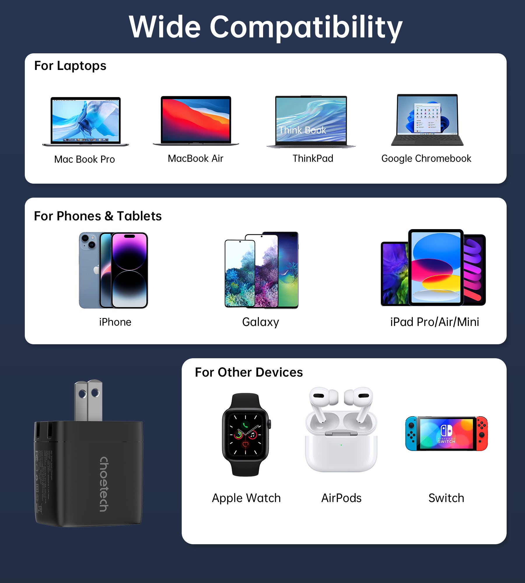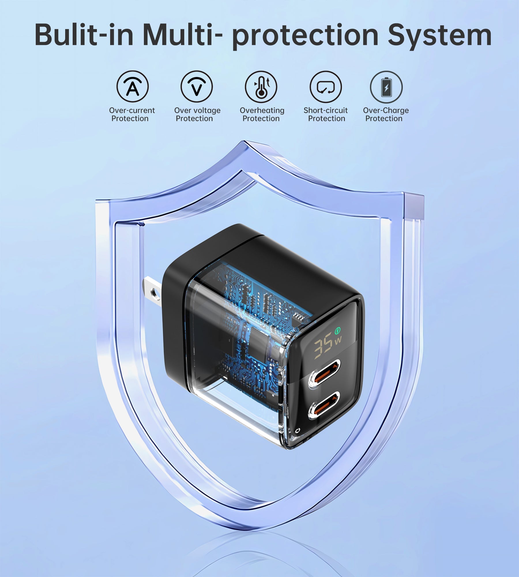 GaN 35W Wall Charger – Dual USB-C, Display, US