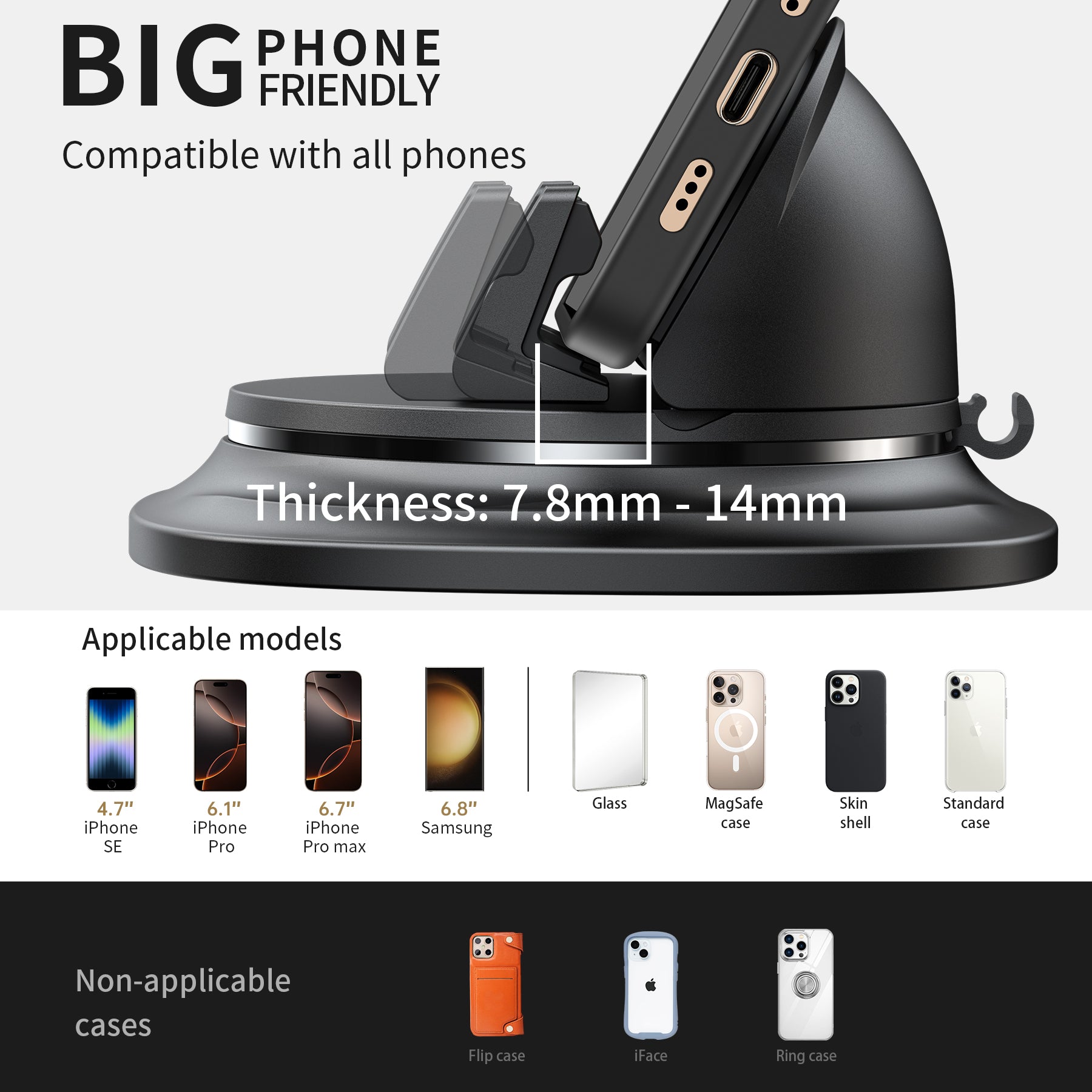 √ Dashboard-Safe Design: Compact and soft-material construction leaves no trace or damage on your car interior.√ 仪表盘安全设计:紧凑且采用软质材料,不会在您的汽车内饰上留下痕迹或造成损坏。