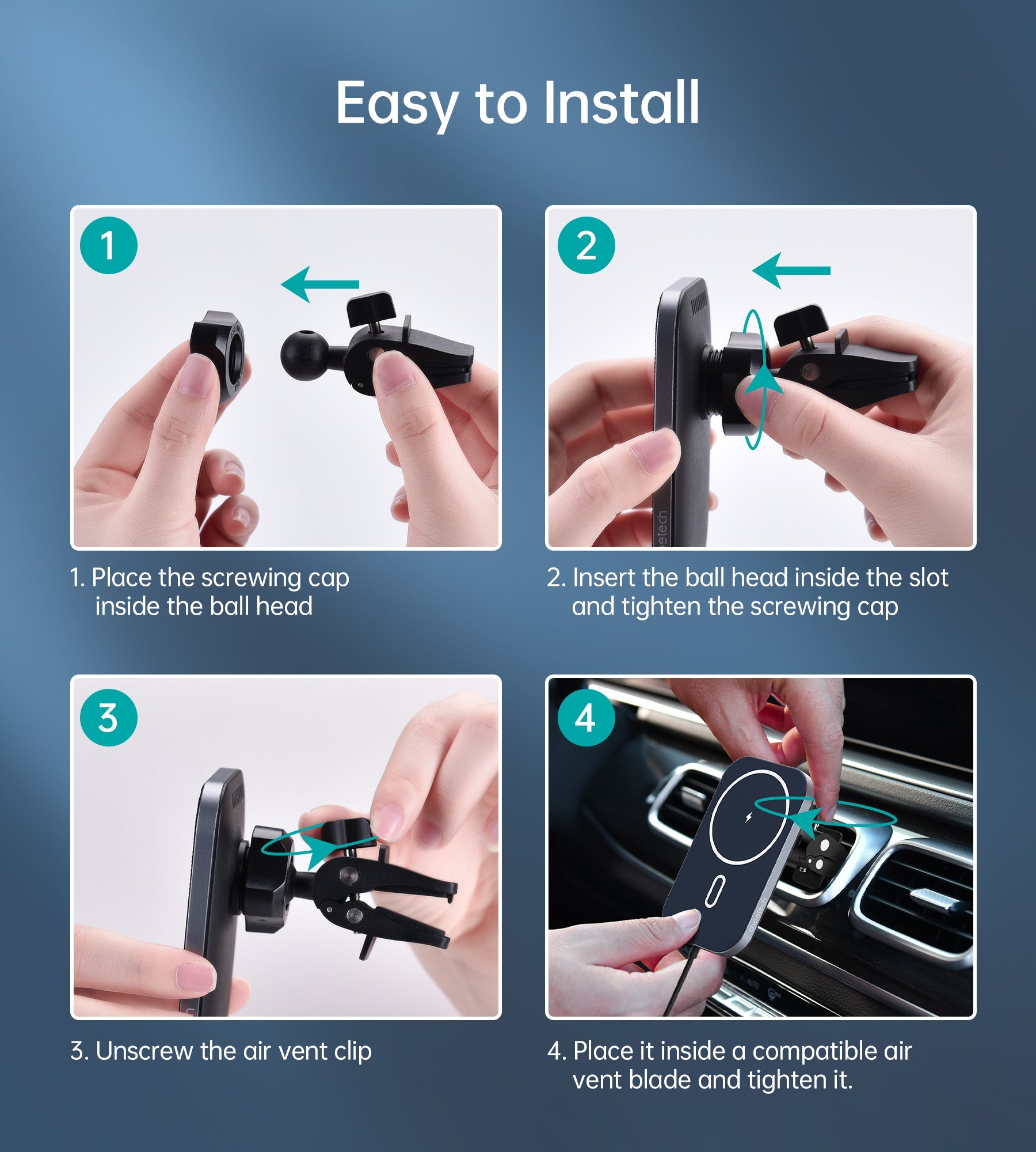 🔄 360° Adjustable Ball Joint: Flexible positioning for optimal viewing angles on dashboards or vents.