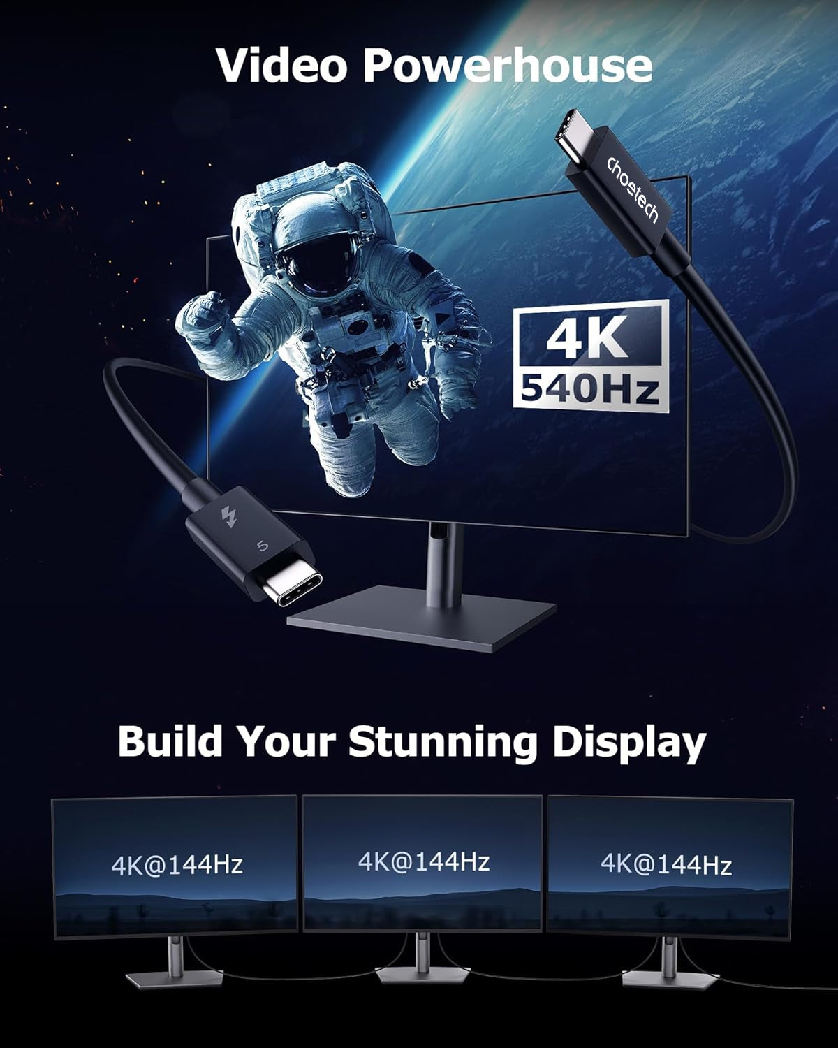Packing List USBC to C Thunderbolt5 Cable*1 Choetech Card *1 Instructions *1