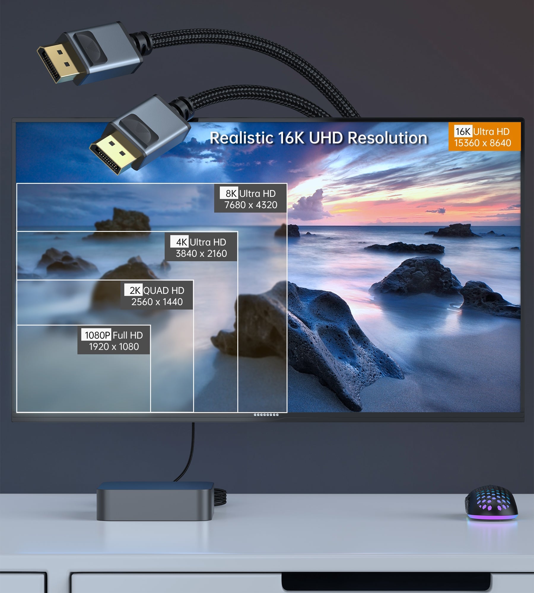 DP 2.1 Cable – 80Gbps, 16K@60Hz, HDR2 for PC & Monitor