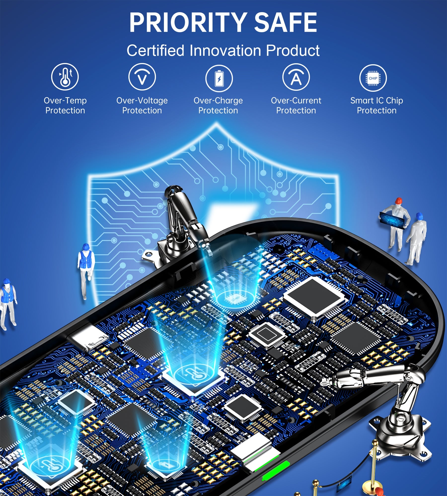 Designed with anti-slip PU leather surface and anti-slip pads on the bottom help keep your pad in place, heat dissipation holes at the bottom to keep your phone cool while charging. integrated smart chip inside provides better temperature control, surge protection, short-circuit prevention, overheating, overvoltage prevention and more. Don't fumble with your phone case.charges directly through cases up to 4 mm thick (not magnetic or metal cases)