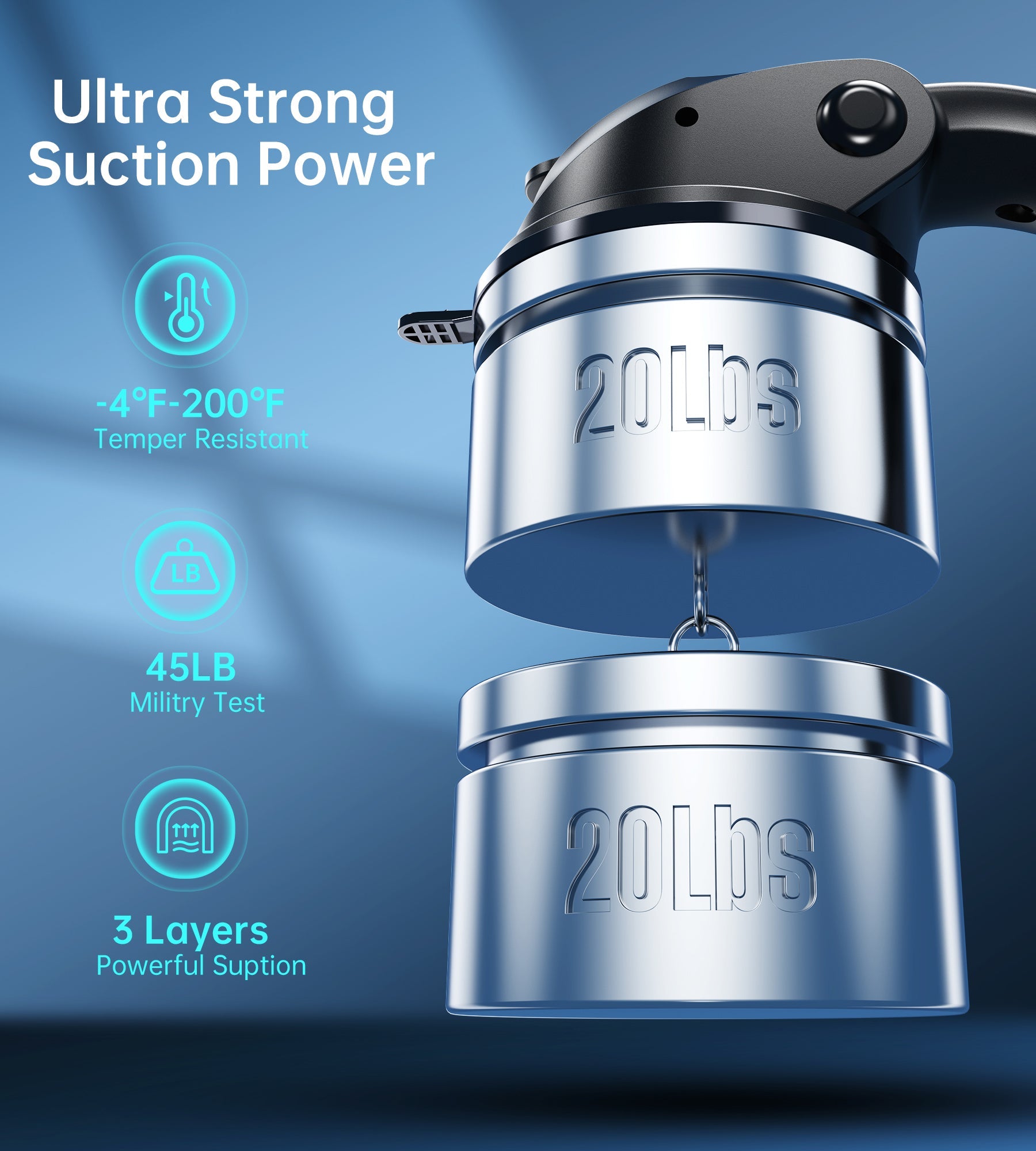 Our Magnetic Car Mount is equipped with a full ring of 16 strong built-in magnets to keep your iPhone secure and safe from falling off even on a rough road and through any bumps. The dash mount features a 3-layer suction cup with an extra sticky gel pad (resist even a -40 to 200 degree F), solving the worry of having your phone dropping in hot weather. After extensive tests, this Magnetic Car Mount can bear a load of 45LB.