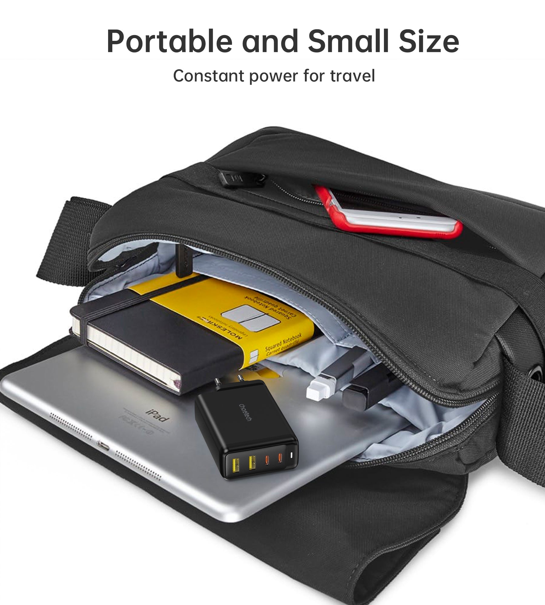Personalizeitnow’s four port GaN Wall Charger delivers a maximum shared output of up to 140W to efficiently charge a MacBook Pro as well as three other additional devices through its two USB-C and two USB-A ports. Equipped with Intelligent Sharing Technology that allows our wall charger to recognize and distribute necessary output to four connected devices. Features integrated GaN technology for a safe and efficient high wattage charging experience - no other reliable four-port charger packs that kind of power into such a tiny size.