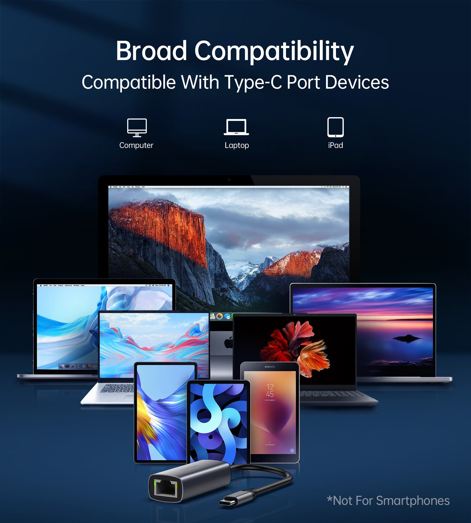 Wide compatibility, our ethernet to usb c adapter is compatible with multiple devices such as MacBook Pro 2016/2017/2018/2019/2020, MacBook Air 2018/2019/2020, iPad 2018/2020, Dell G3/G5/G7, XPS13, XPS15, Google PixelBook, Surface Book 2, Surface Go.