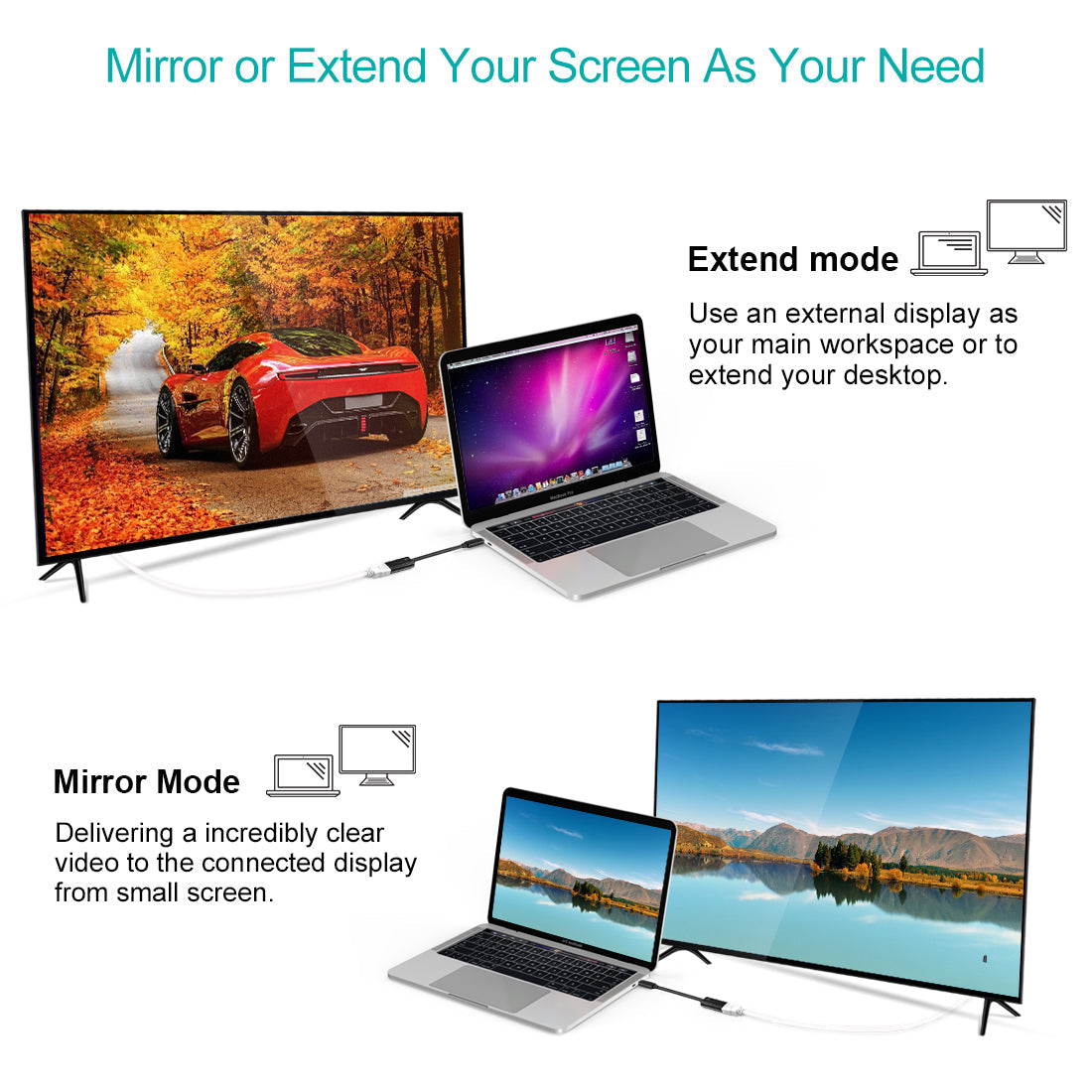 5. For certain monitors such as Philips 288P6(4K@30Hz), Dell P2715Q (4K@30Hz) the adapter may turn on and off if it’s connected with a long HDMI cable. We highly recommend using a short HDMI cable within 5.9ft for a stable output and connection.