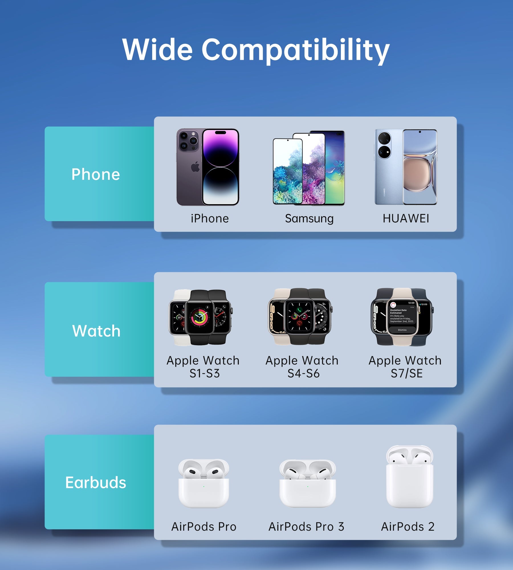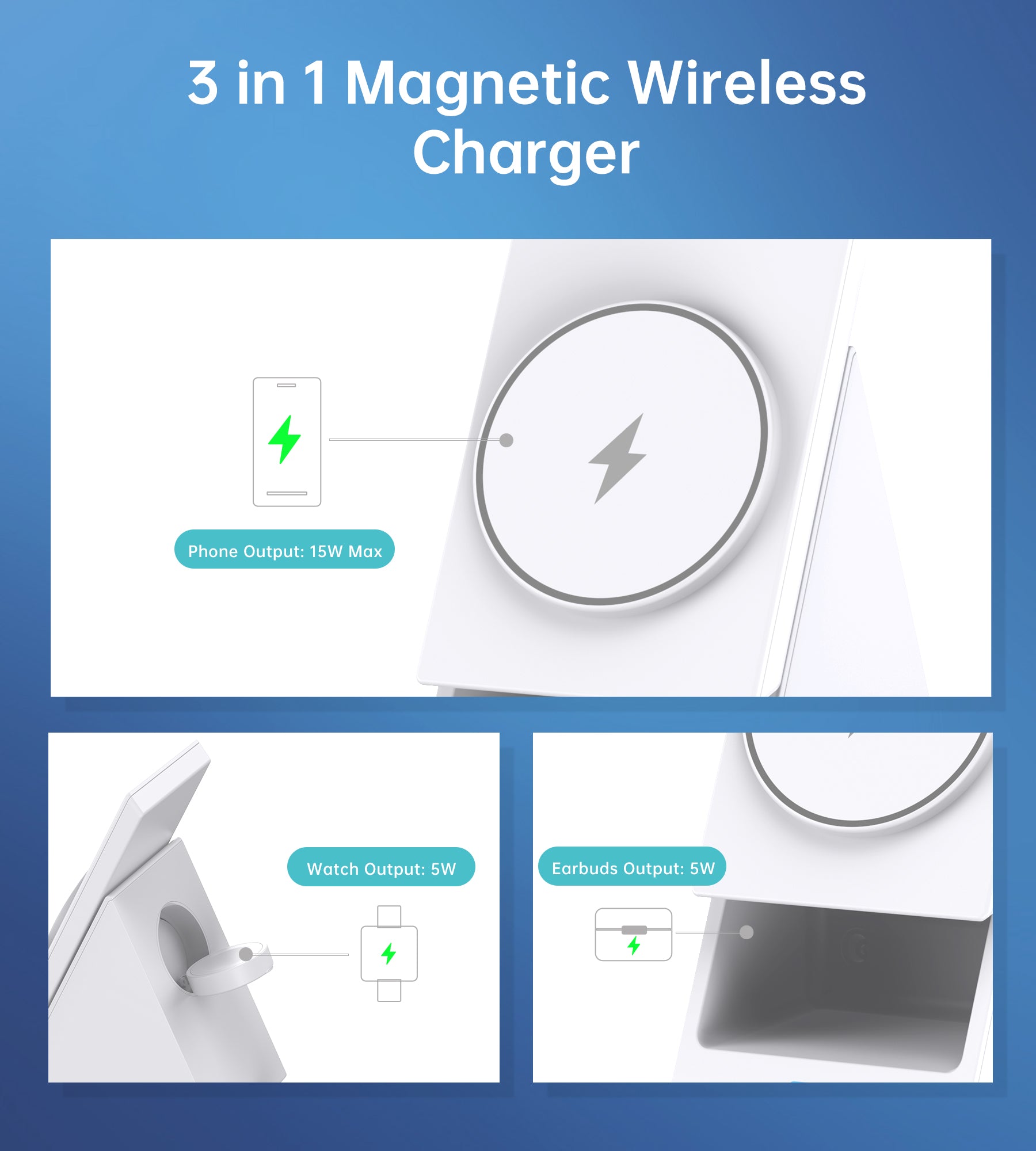 3-in-1 Magnetic Wireless Charger – Foldable Watch Holder